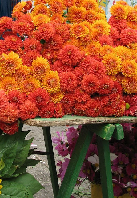 While touring a few of the Main Streets in local towns . . . I saw mounds of Fall colored mums gathered around store fronts, buckets of pumpkins ~ orange and white ~ as well as gourds of all sizes and colors. Simply, beautiful.